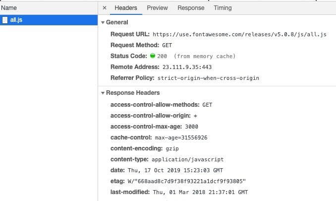 以下の例では、キャッシュエントリはまだ有効であり、HTTP 304がコンテンツなしで返されました。これにより、リソース自体のダウンロードが保存されます。キャッシュエントリが最新ではない場合、サーバーは200で更新されたリソースを応答し、再度ダウンロードする必要があります。