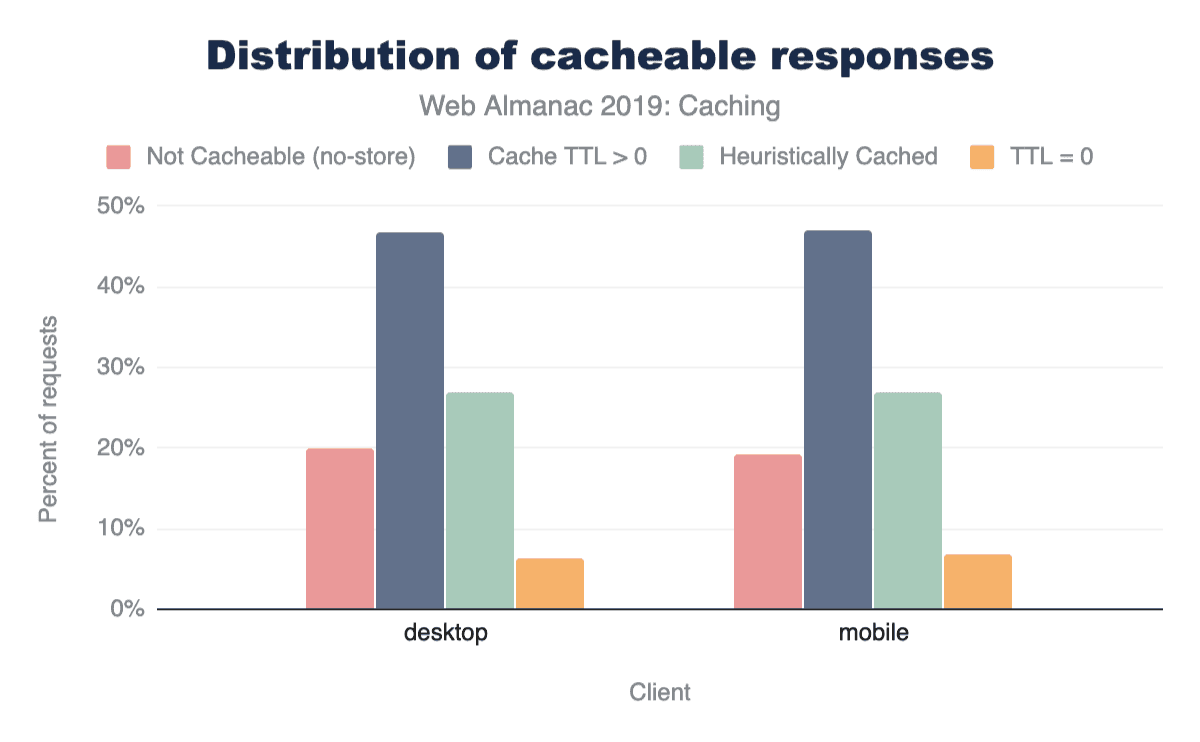 キャッシュ可能なリソースは、クライアントによって一定期間保存され、後続のリクエストで再利用できます。すべてのHTTPリクエスト全体で、レスポンスの80%はキャッシュ可能と見なされます。つまり、キャッシュがそれらを格納することを許可されています。