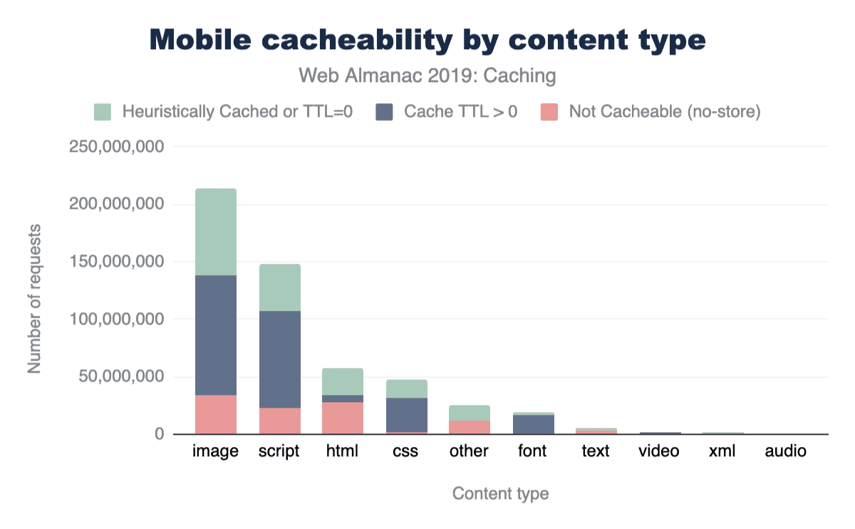 モバイルの同じデータを以下に示します。ご覧のとおり、コンテンツタイプのキャッシュ可能性はデスクトップとモバイルで一貫しています。