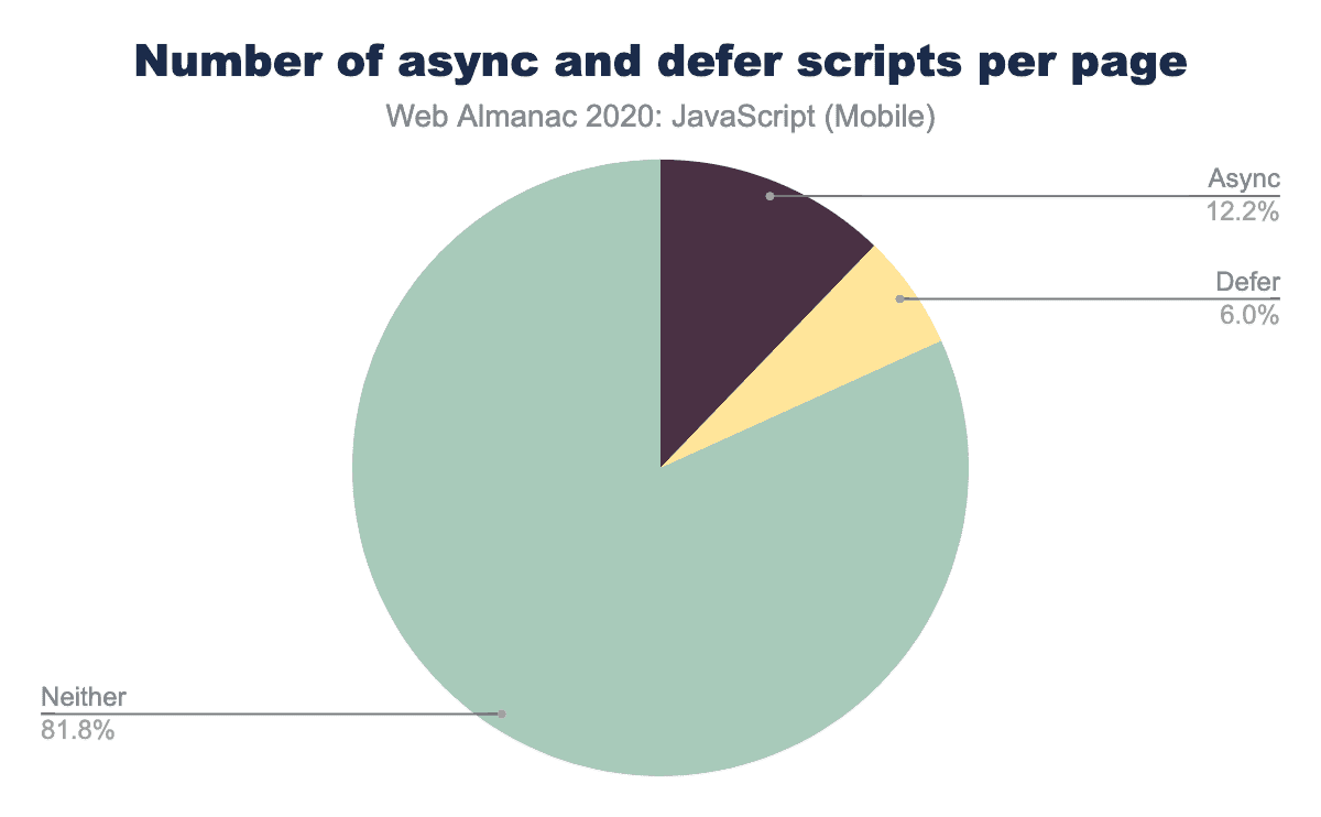deferが最高のロードパフォーマンスを提供してくれることを考えると(スクリプトのダウンロードが他の作業と並行して行われ、ページを表示できるようになるまで実行が待たされることを保証することで)、その割合がもう少し高くなることを期待したいところです。実際には、6.0%というのは少し膨らんでいます。