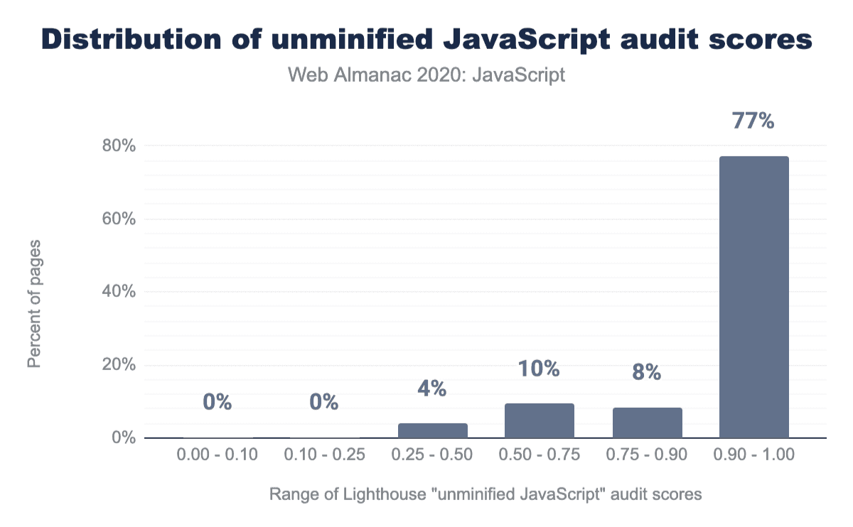 上のチャートを見ると、ほとんどのページが0.90以上のスコアを取得している(77%)ことがわかりますが、これは未完のスクリプトがほとんどないことを意味します。