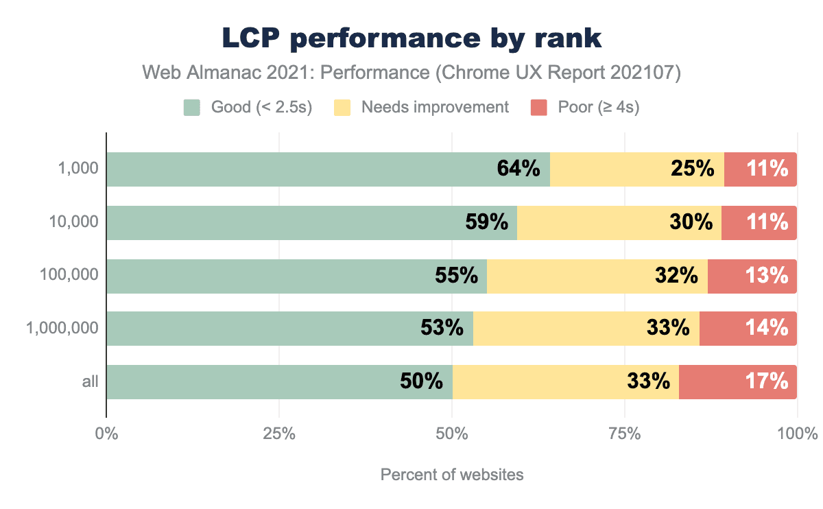 今年の新機能は? 今回はじめて、トラフィックランキング別のパフォーマンスデータを公開します。また、過去の主要なパフォーマンス指標もすべて把握しています。最後に、また、過去の主要なパフォーマンス指標もすべて把握しています。最後に、最大コンテンツの描画(LCP)要素について、より深く掘り下げた内容を追加しました。(LCP)要素について、より深く掘り下げた内容を追加しました。
