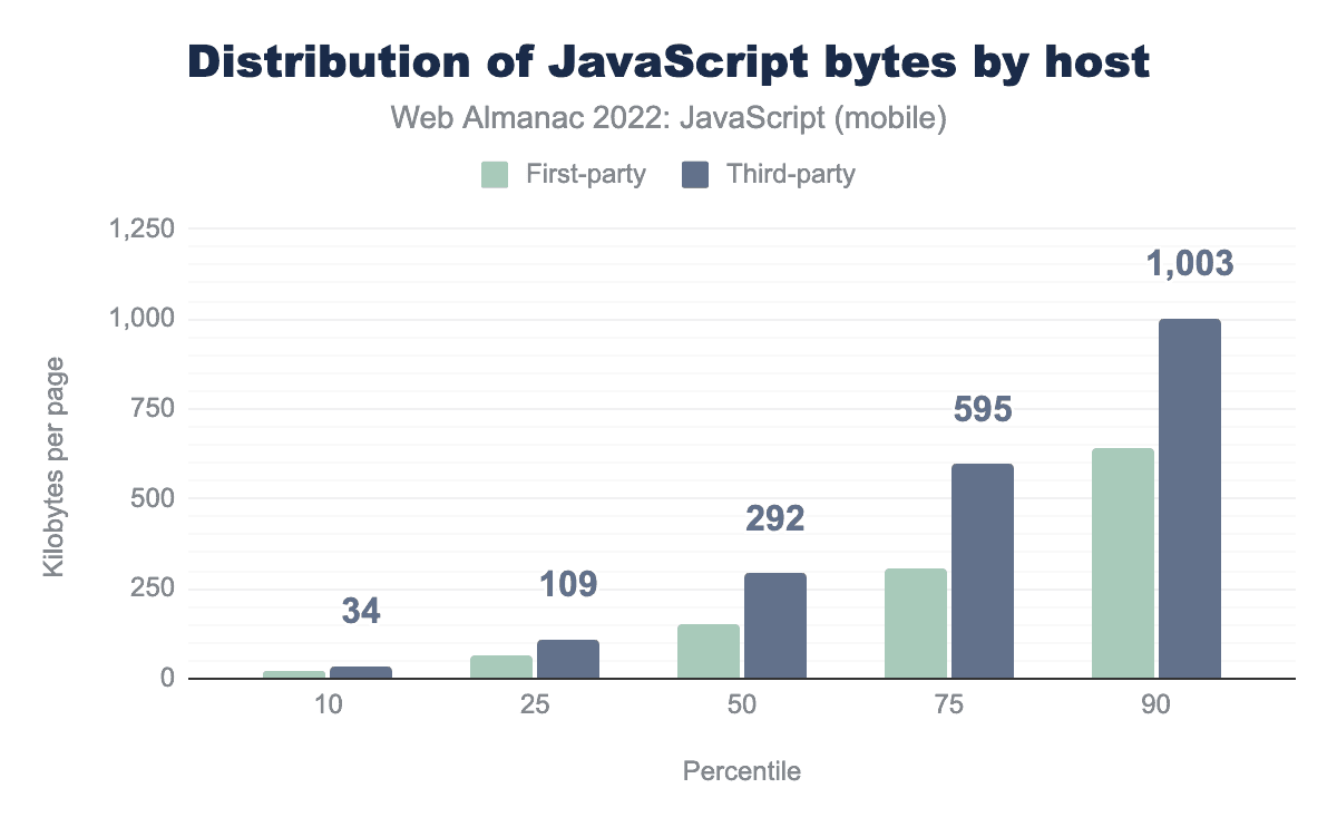 中央値では、ページのスクリプトの25%が注入され、最初のHTML応答で発見できるようにするのとは対照的であることがわかります。さらに問題なのは、ページの75パーセンタイルと90パーセンタイルでは、それぞれ50%と70%のスクリプトが注入されていることです。