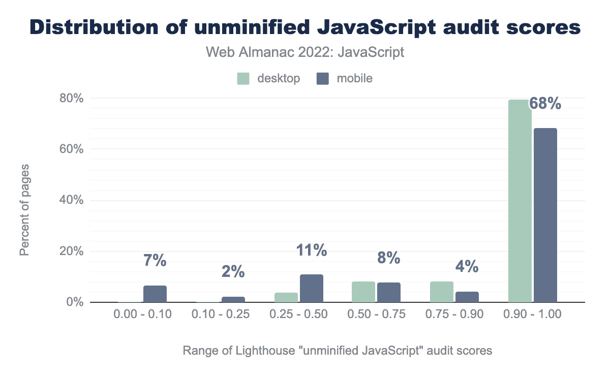 モバイルページの3分の2強は、トランスフォームされているJavaScriptリソースを出荷しているか、あるいは不要なレガシーJavaScriptを含んでいます。