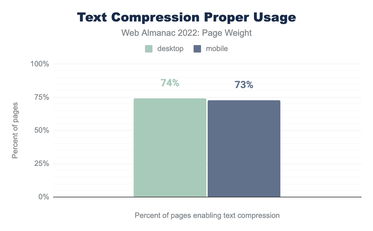 デスクトップのページロードの74%、モバイルのページロードの73%で圧縮が検出されました。